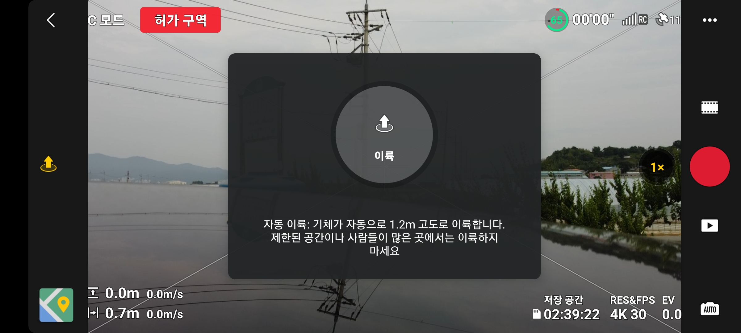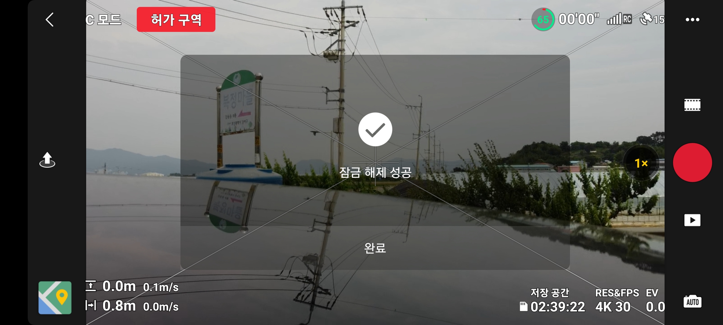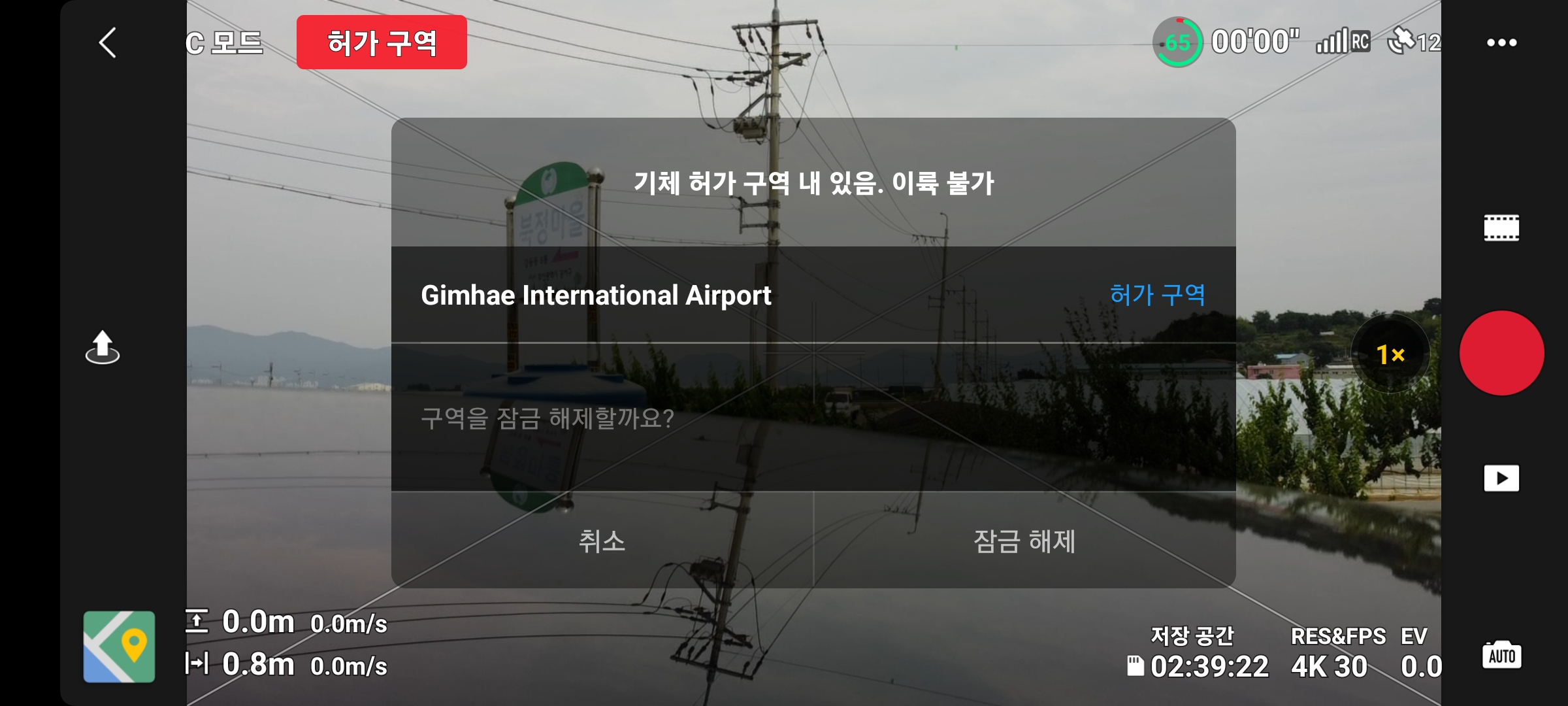 현장에 도착해서, 실제 위치 기반으로 잠금 해제를 해야 정상적으로 비행이 가능합니다.