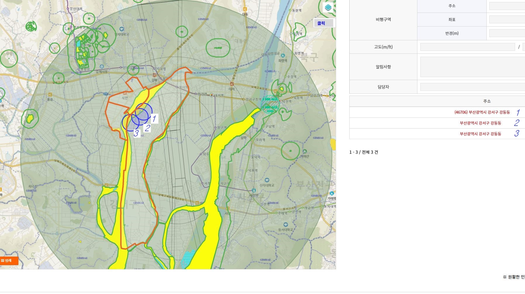 김해공항의 관제권 한복판. 지도상 1번으로 표시된 이곳은 단순히 도심지일 뿐만 아니라, 그 위로는 항공기가 쉼 없이 오가는 바쁜 하늘길이다. 이곳에서 드론을 띄우는 일은 단순한 ‘취미 촬영’의 범주를 넘어선다. 작은 비행체 하나가 그 어떤 안전 방해 요소가 되지 않도록, 미리미리 조심하고 또 조심해야 하기 때문이다.