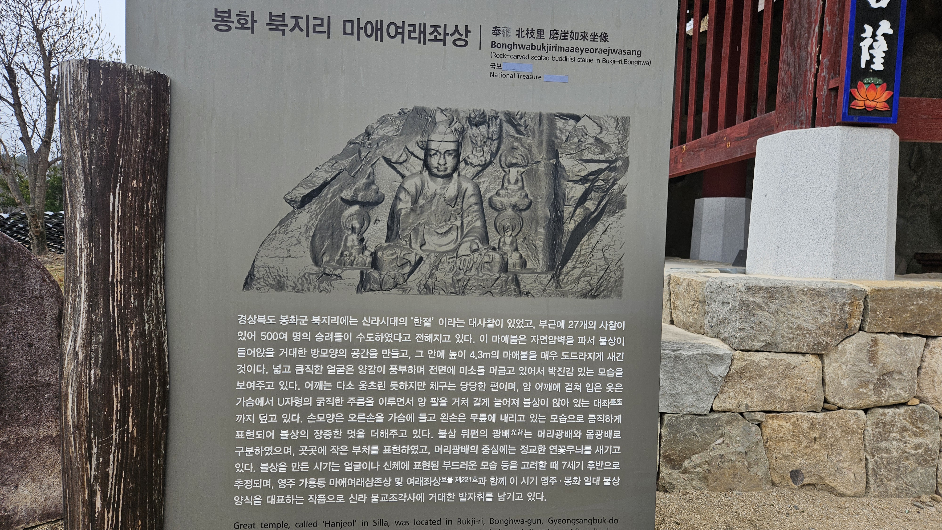 경북 봉화군 물야면 북지리의 조용한 산골 마을에는 '지림사'라는 작은 사찰이 자리하고 있습니다. 이곳은 국보 제201호인 '봉화 북지리 마애여래좌상'이 있는 곳으로, 신라시대의 불교 예술을 대표하는 유산입니다.