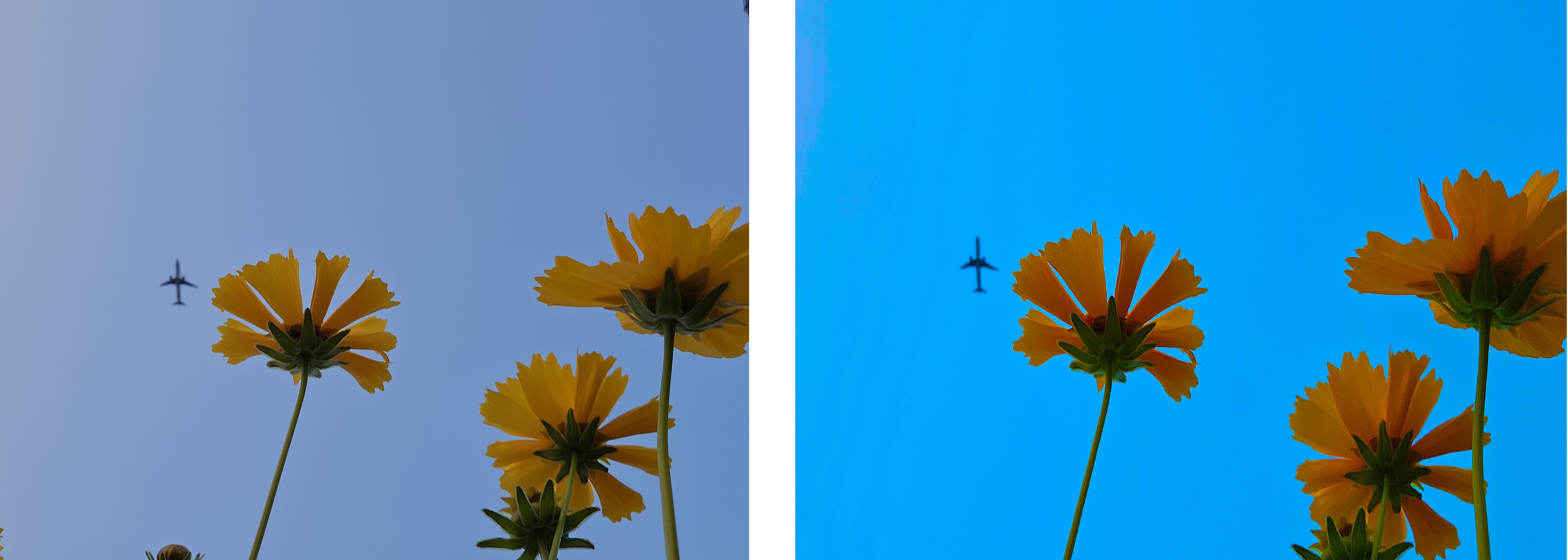 왼쪽(원본) 오른쪽 (보정본) 색상 체도 등 조건은 같은데 다른 느낌입니다
