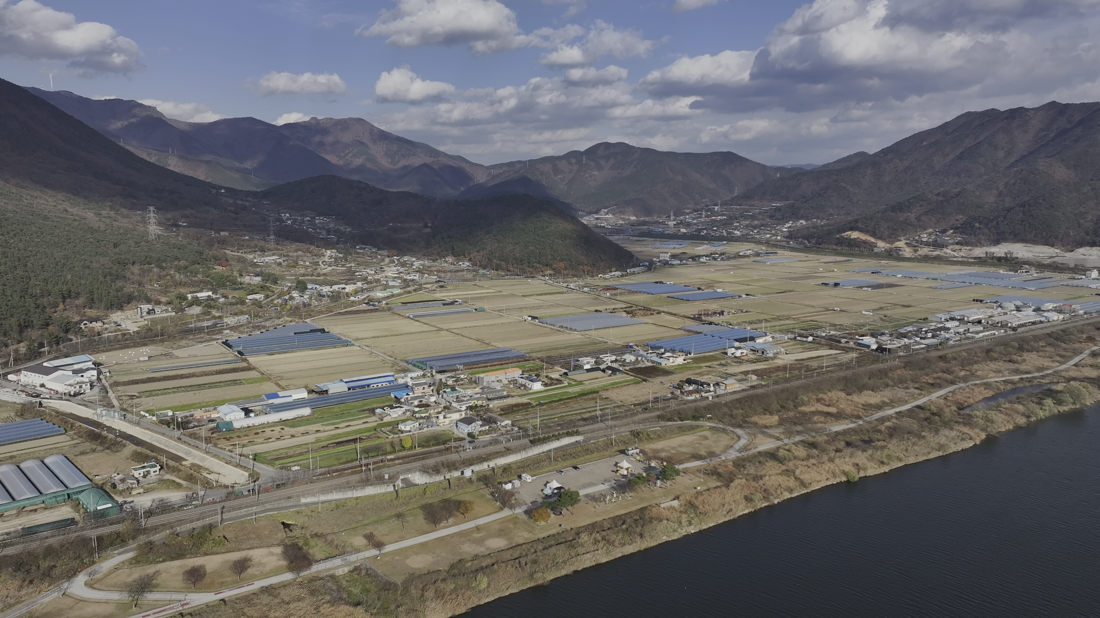 강변을 따라 펼쳐진 농지들과 갈대밭, 그리고 멀리 이어지는 제방과 도로망이 드론의 눈에 하나하나 포착되었고, 이 지역이 지닌 잠재력을 새삼 실감하게 해주었습니다. 토지를 확인하는 동시에 주변 경관도 함께 담으면서, 자연과 인공이 조화를 이루는 이 지역의 진면목을 기록하는 시간이기도 했습니다.