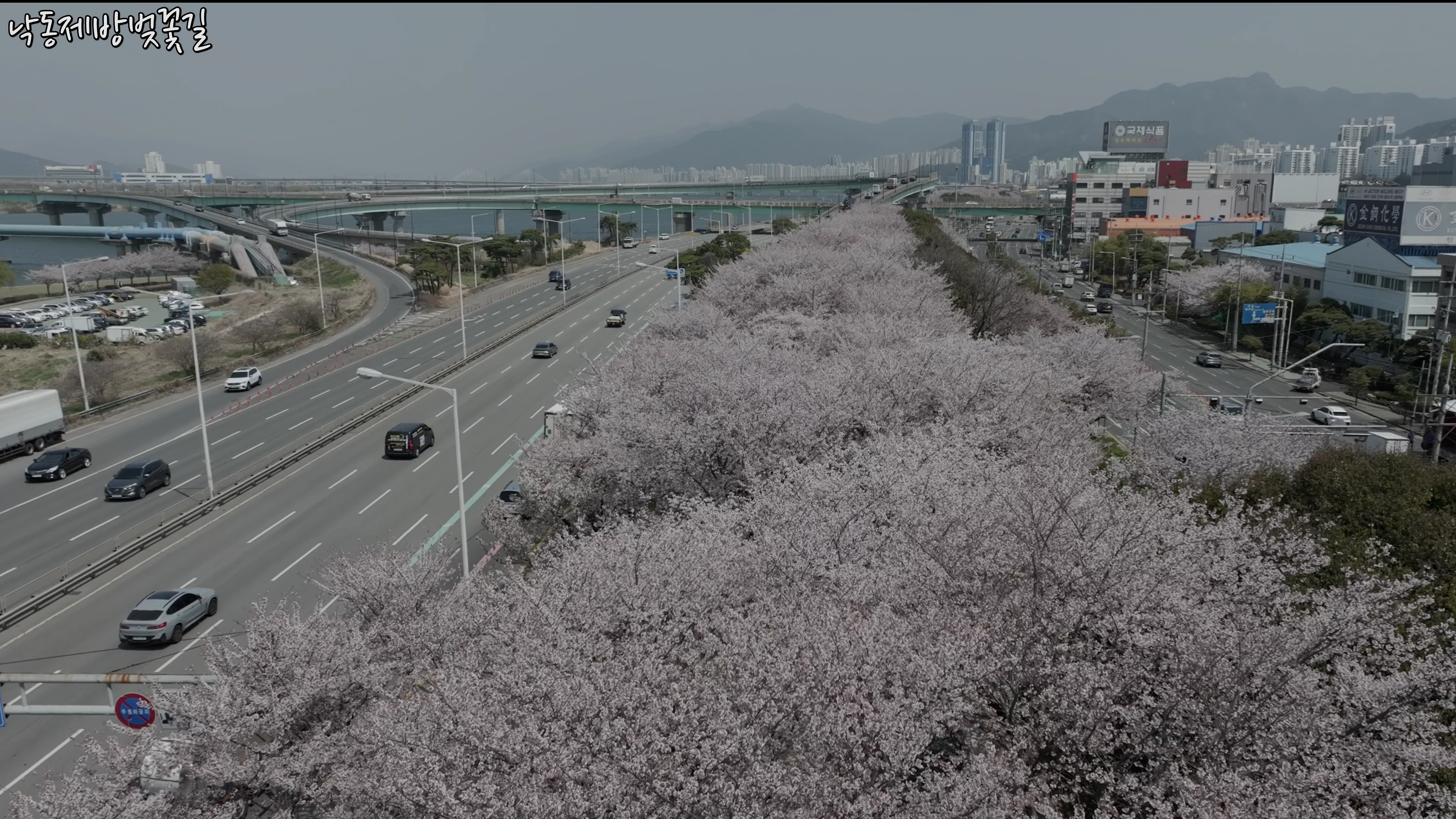 낙동강 따라 흐드러진 벚꽃, 삼락공원의 봄을 드론으로 걷다