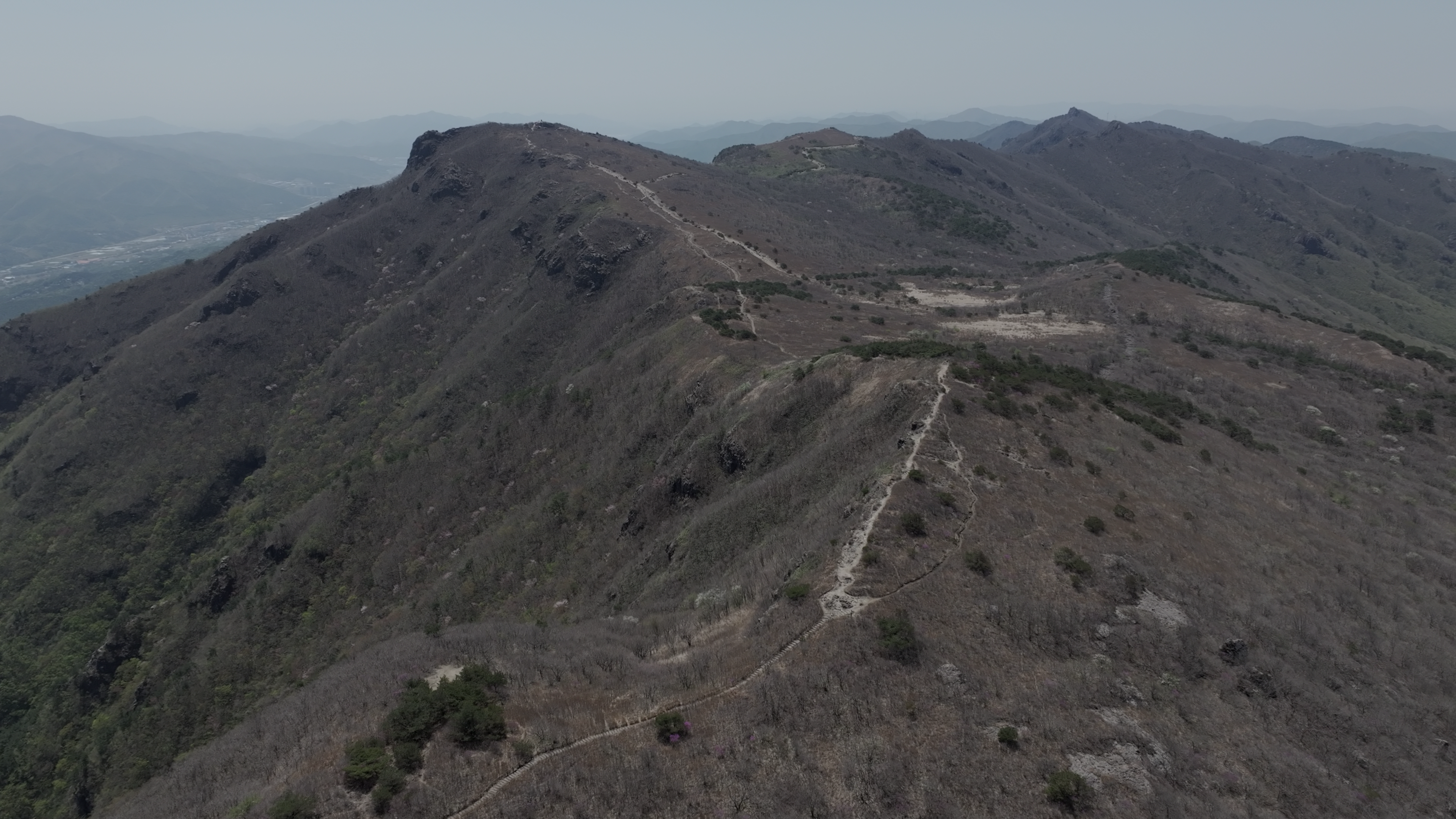 좁은 산길이 능선을 따라 S자 곡선으로 이어질 때, 그 길을 프레임 안쪽부터 바깥쪽으로 뽑아내면 보는 사람은 마치 그 길을 따라 걷고 있는 듯한 기분이 든다.