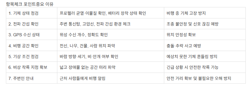 그러니 드론을 띄우기 전, 이 체크리스트를 습관처럼 확인하세요. 작은 습관이 큰 안전을 지켜줍니다.