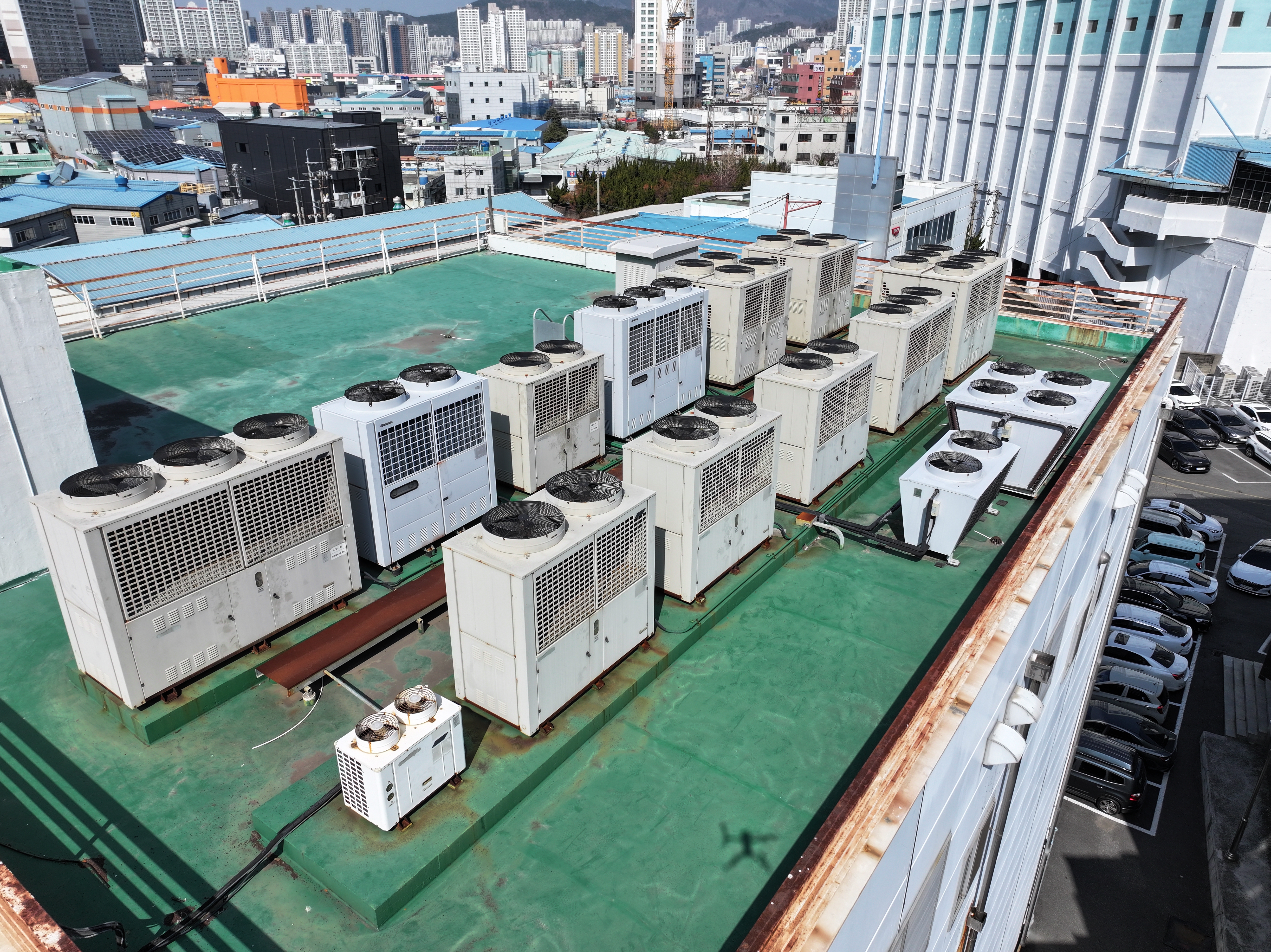 장림 산업단지가 내려다보이는 어느 날, 한 건물 옥상에서의 드론 촬영이 진행되었습니다. 이번 촬영의 목적은 흔히 지나칠 수 있는 부분, 바로 에어컨 실외기의 상태를 확인하는 일이었습니다.